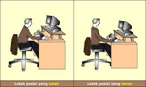 Pada saat bekerja menggunakan komputer posisi duduk harus diperhatikan. Disarankan, agar duduk dalam posisi tegak dan rileks juga disarankan agar salah satu dari kaki agak maju ke depan.